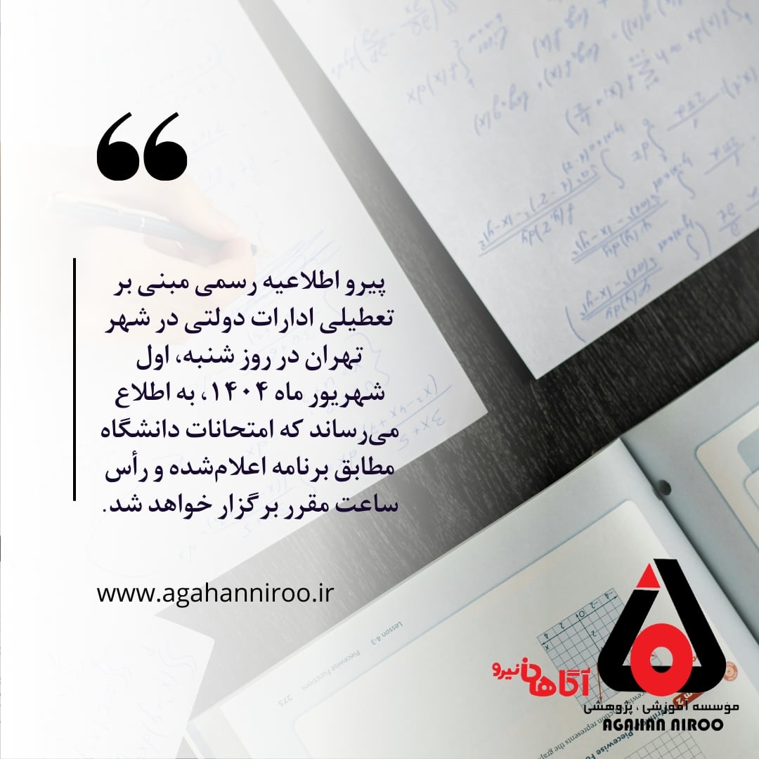 اطلاعیه شماره یک معاونت آموزشی دانشگاه جامع علمی کاربردی کشور در خصوص امتحانات پایان نیمسال دوم سال تحصیلی ۱۴۰۴ـ۱۴۰۳مشاهده